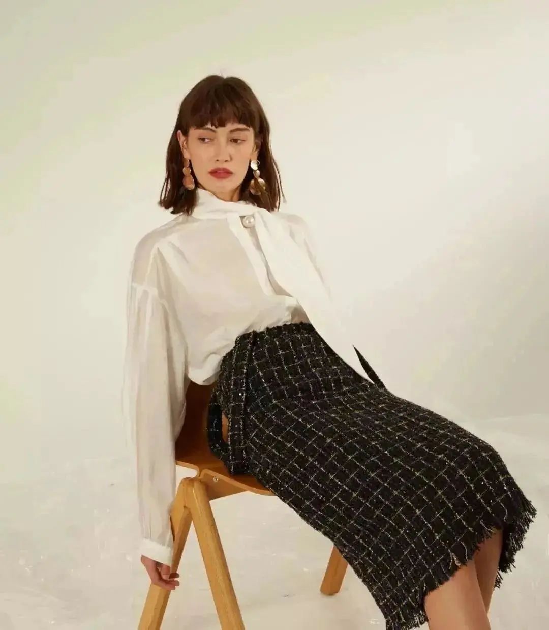飘带衬衫其实从去年秋天开始就已经流行,今年更是趁热打铁再刷上一波热度。