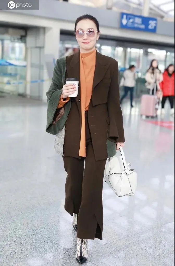 开场的白衬衫配黑西装让娘娘一下老了十岁,有年长企业家的感觉。内搭换上飘带衬衫立马就让造型生动起来,连西装看着也不那么死板了。